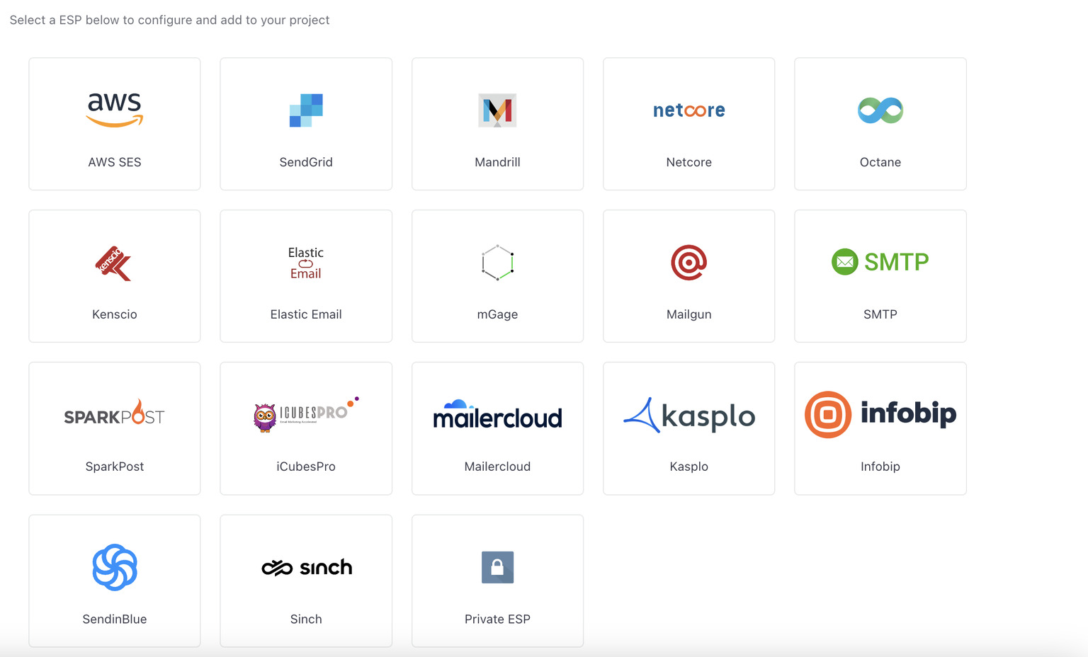 In the Integrations section, search for **Kasplo** in the list of available ESPs (Email Service Providers).